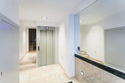 En esta obra os mostramos un ejemplo de como en una comunidad sin ascensor, se ha ejecutado una obra realizando una escalera nueva en un patio de luces, para dar acceso al nuevo ascensor desde el zaguán sin tener que librar ningún obstáculo.